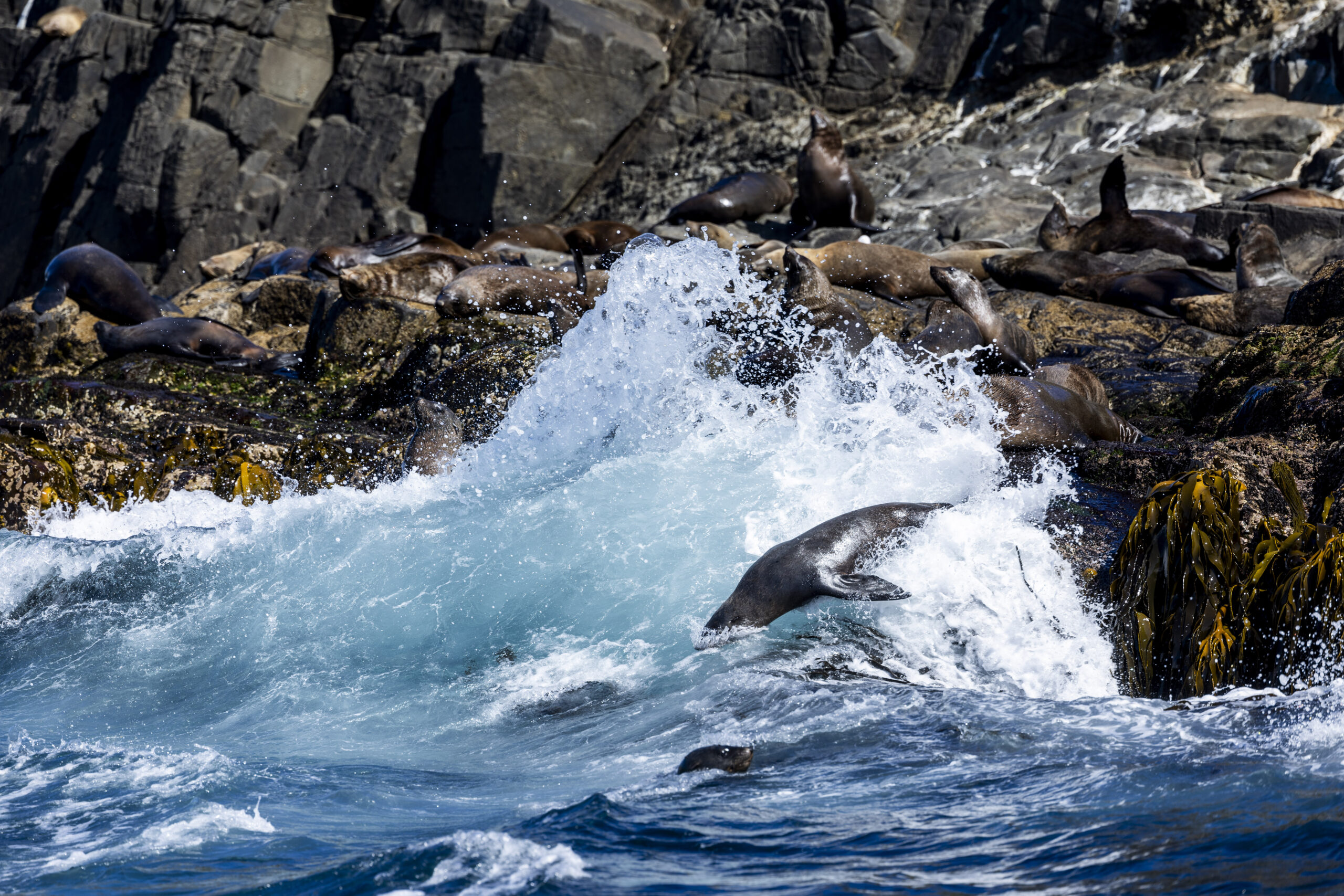 On a recent cruise in southern Tasmania, we had the privilege of capturing mesmerizing photographs of the region’s natural beauty. Among the highlights were stunning shots of seals lounging on rocky outcrops, their sleek forms contrasting with the rugged coastal scenery. The weathered rock walls provided a dramatic backdrop, showcasing the pristine environment of southern Tasmania. These photographs capture the essence of adventure and exploration in this breathtaking location.