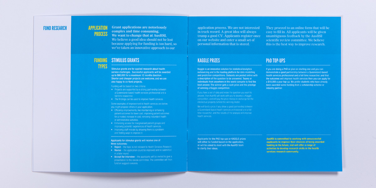 Creative strategy for Queensland's leading health services innovation organisation. AusHSI's digital presence comprises a public website, intranet and grant management system, designed and developed from the ground up.
