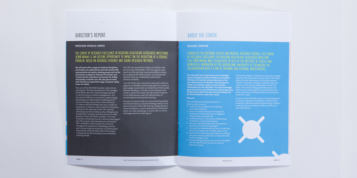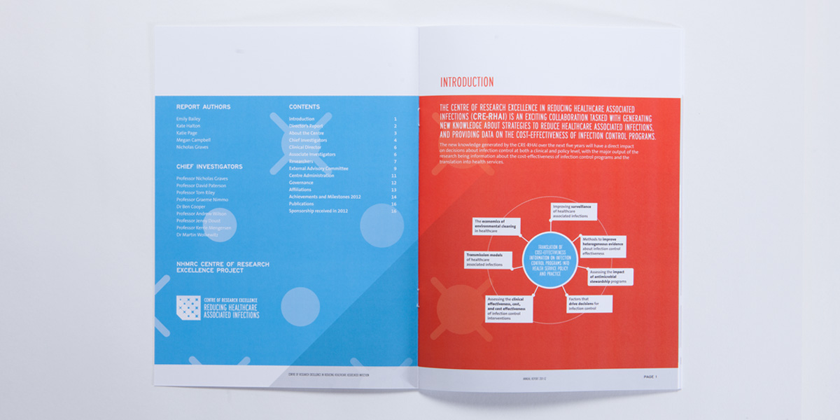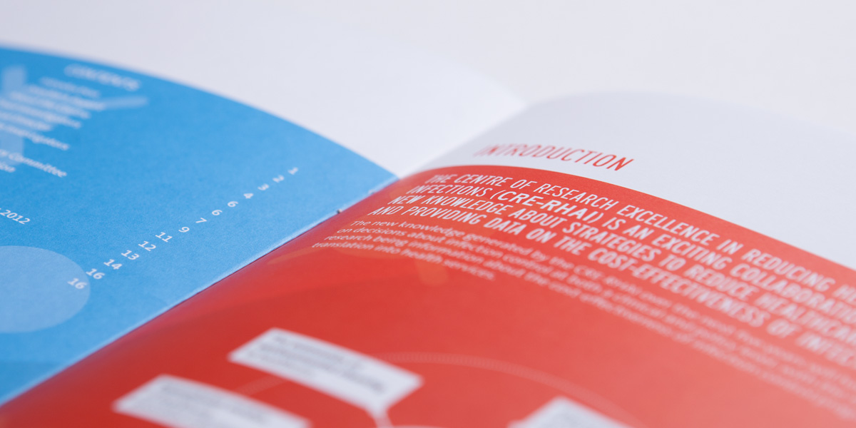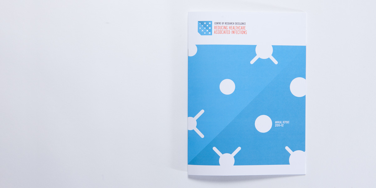 Creative strategy, branding and identity for the Centre for Research Innoation in Healthcare Associated Infections. The brand was launched with a consistent image across digital and printed mediums.